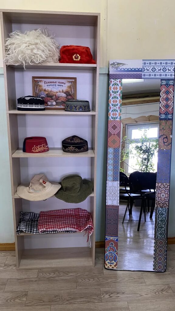 После обеда в фойе гостей ждала выставка «Головные уборы народов мира» из коллекции Владислава Николаевича Попова. Рядом открыли фотозону «Код единства», оформленную стилизованными элементами разных культур.